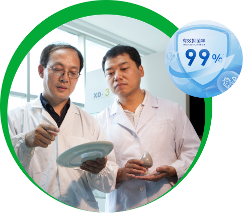 BONA 多功能健康陶瓷材料具有高效抗菌功能,能抑制各類病原菌和微生 物,同時可氧化分解掉細菌的殘骸。由其加工的陶瓷制品,抗菌率達到 99.99%,對病毒的抑制率也達到 90%以上。